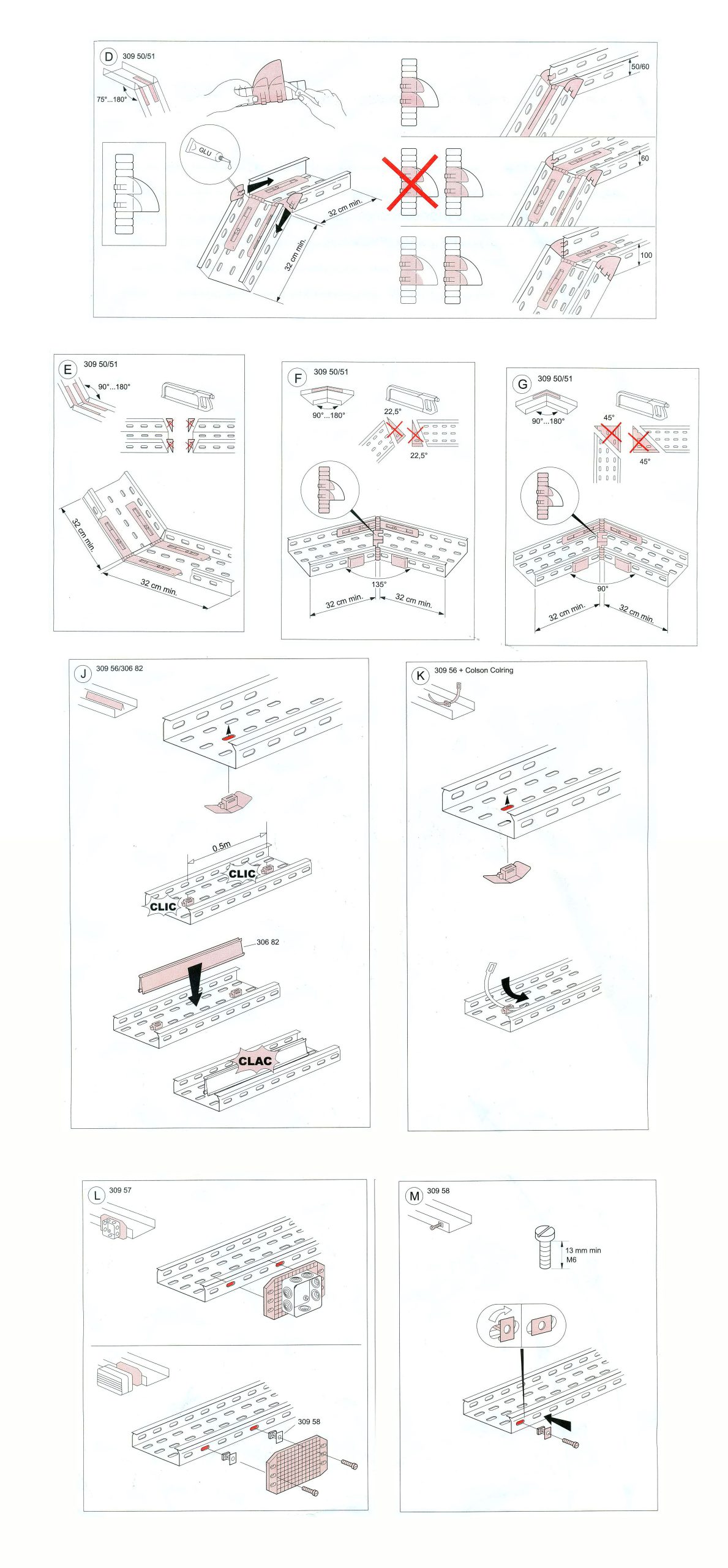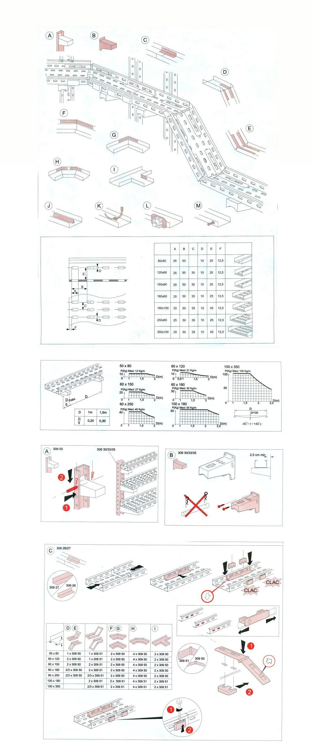 پروفیل پایه : جهت قرار گرفتن پایه های سینی کابل با قابلیت تغییر سطح بوسیله پین کلیپس : به منظور جداکردن داکت برای سیم ها و کابلهای مختلف به وسیله گیره های اتصال قطعات جانبی