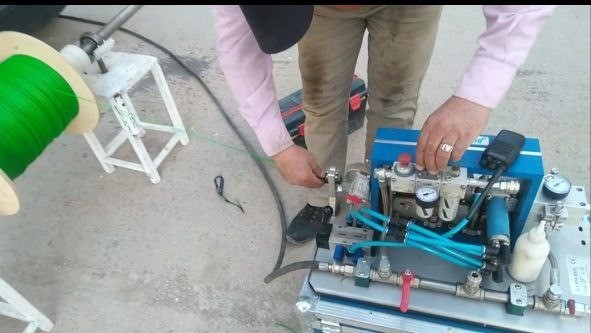 После подготовки трассы оптические волокна с помощью установки air blowing продуваются в микродакты.