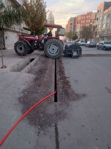 В местах, где техника не может работать (перекрёстки, узкие переулки, бордюры), земляные работы выполняются вручную.