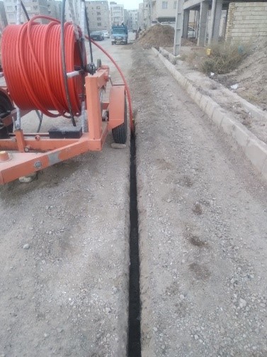Маршрут прокладывается траншеекопателем. Дно канала покрывается слоем мягкого магниевого песка толщиной 5 см, затем укладываются микродакты, которые засыпаются ещё одним слоем песка и закрываются предупредительной лентой.