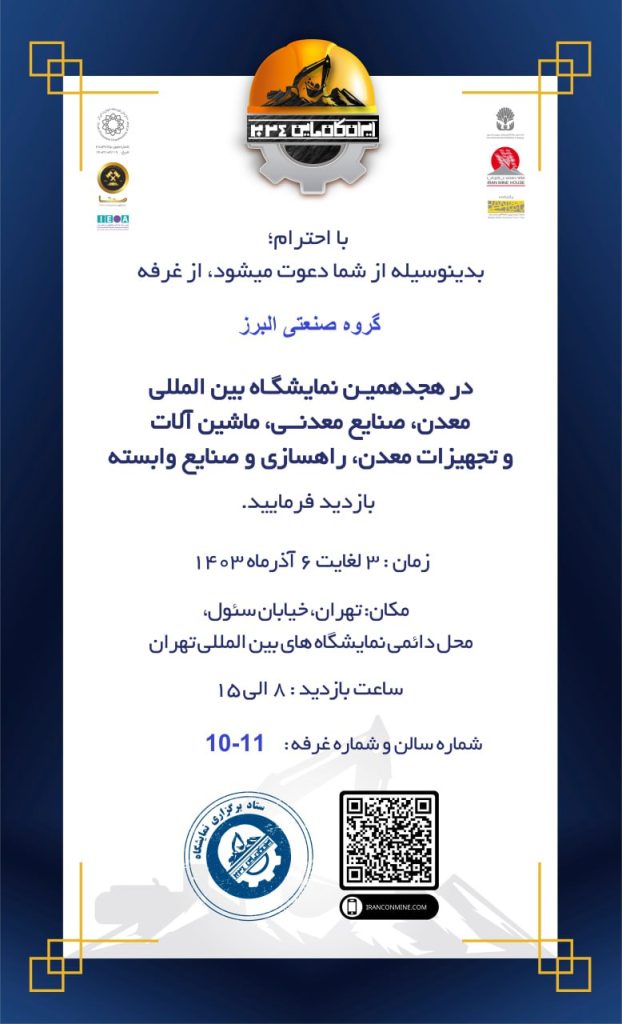 Промышленная группа «Альборз» — участие в XVIII Международной выставке инвестиционных возможностей Промышленная группа «Альборз» с гордостью сообщает о своём участии в XVIII Международной выставке инвестиционных возможностей в области горнодобывающей промышленности и минеральных отраслей Ирана в качестве инвестора. Мы приглашаем всех уважаемых посетителей выставки (владельцев месторождений и шахт) посетить стенд нашей компании для проведения встреч и […]